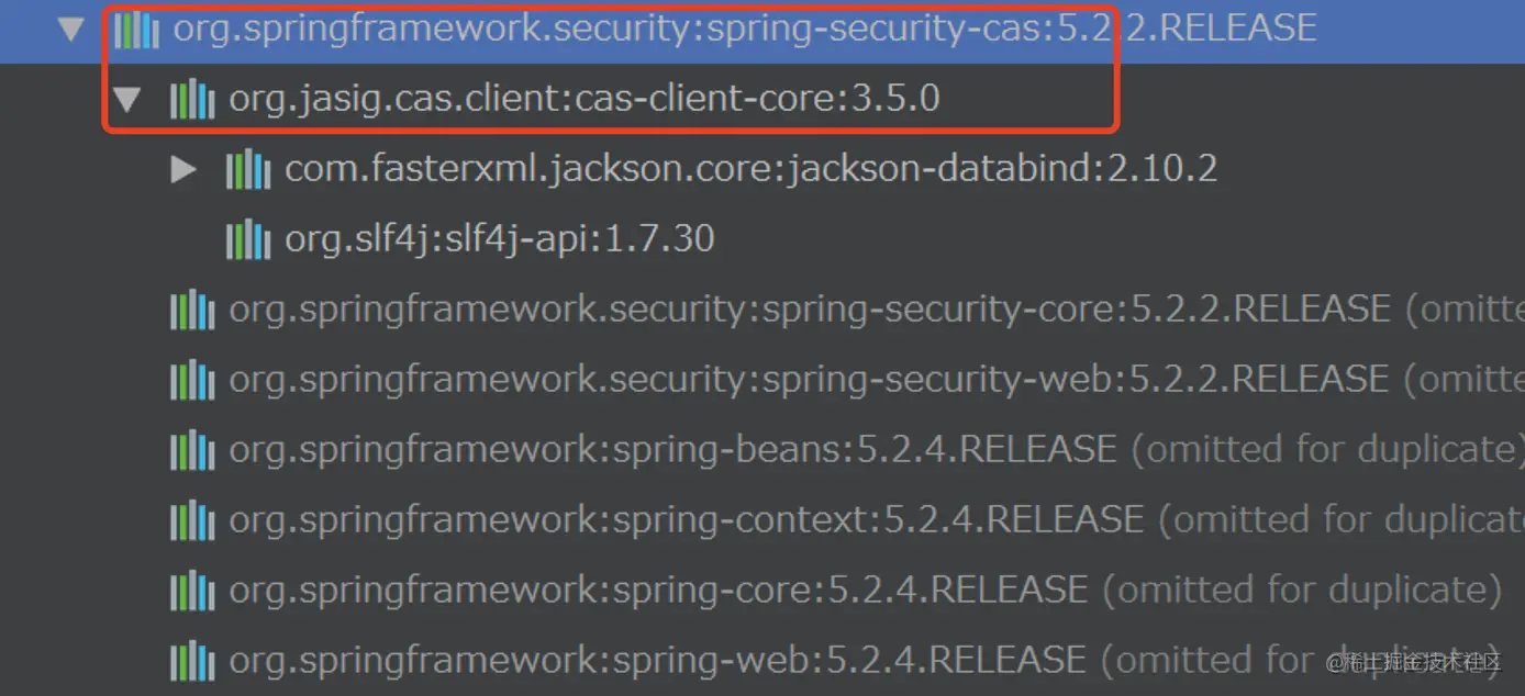 其中最主要的依赖是spring-security-cas,其内部依赖关系如下: