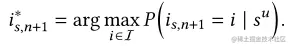 是预测最可能的用户 u 在下一个时间步 n+1最有可能点击的项目。公式描述:
