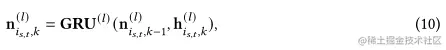 上述方法在消息传递过程中都采用了排列不变的聚合函数,但忽略了邻域内项的顺序,这可能会导致信息的丢失。为了解决这个问题,LESSR在图结构中保留了条目的顺序,并利用GRU组件按顺序聚合邻居,如下所示: