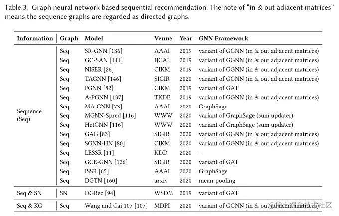 序列推荐的任务是学习信息图表示,即序列表示。节点表示和图表示都可以通过GNN学习。
