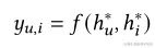 h_u、h_i分别是最终学习到的用户表示和项目表示,f 是评分函数,可以是点积、余弦相似度、多层感知器等,y_u,i表示用户u对第i项的偏好得分,通常以概率表示。