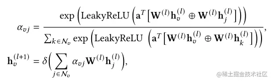 **3、GAT:**假设邻居对中心节点的影响既不相同也不是由图结构预先决定的,因此它通过利用注意机制来区分邻居的贡献,并通过关注其邻居来更新每个节点的向量。公式如下: