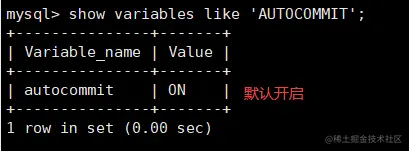 show global variables like 'AUTOCOMMIT'; #查看全局事务的AUTOCOMMIT值