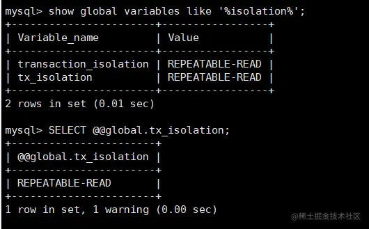 SELECT @@global.tx_isolation; #方法二