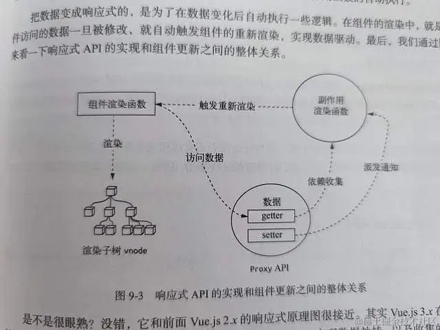 再比如,Vue框架使用了数据驱动的方式来实现响应式,通过数据劫持的方式,当获知数据发生修改时就派发通知,启用渲染函数来重新生成组件。还解释了源码如何通过watch侦听器来观测数据的实时变化,之后执行相应的逻辑操作。