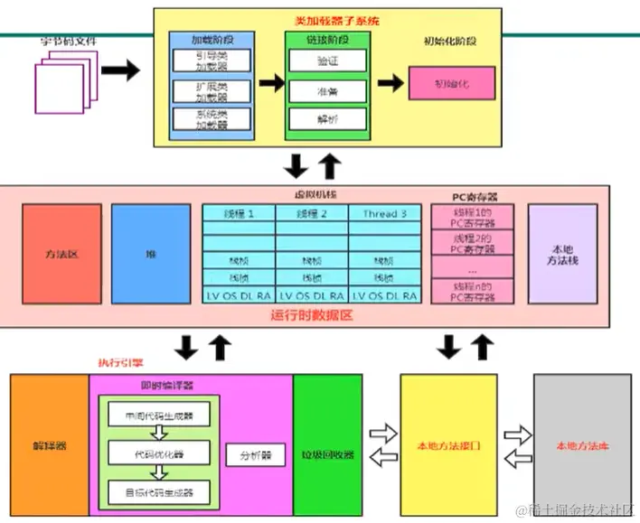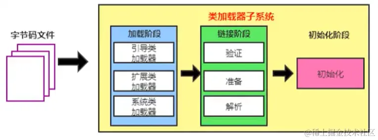 - 在.class文件->JVM->最终成为元数据模板,此过程就要一个运输工具(类装载器Class Loader),扮演一个快递员的角色。