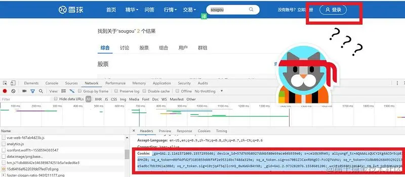 雪球网是一个股票投资网站,你可以使用网站的搜索功能来查询股票信息,比如我们想查询sougou的信息,下 面利用了charles分析工具来查看请求和回答: