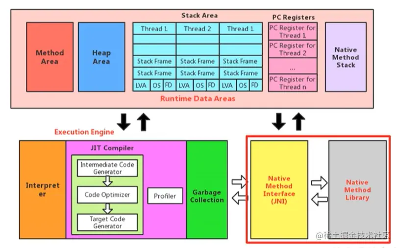 JVM支持着Java语言本身和运行时库,它是Java程序赖以生存的平台,它由一个解释器(解释字节码)和一些连接到本地代码的库组成。然而不管怎样,它毕竟不是一个完整的系统,它经常依赖于一底层系统的支持。这些底层系统常常是强大的操作系统。通过使用本地方法,我们得以用Java实现了jre的与底层系统的交互,甚至JVM的一些部分就是用c写的。还有,如果我们要使用一些Java语言本身没有提供封装的操作系统的特性时,我们也需要使用本地方法。