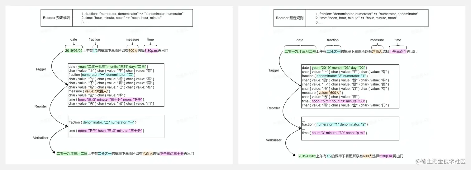 WeTextProcessing 是一个为中文设计的,可以把文本规则化(比如一些阿拉伯数字的日期、时间和数量转化为中文)和反规则化的工具包。