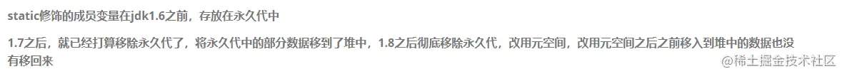 不同版本位置变化的是变量名,6之前放在永久代中,6之后放在堆中(jdk1.7之后,将永久代中的类的静态变量转移到到堆)