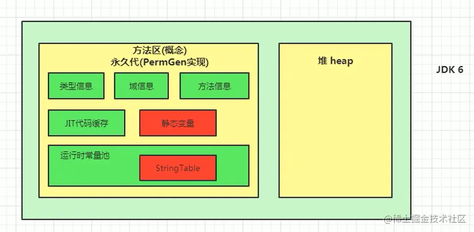 | JDK1.6及以前 | 有永久代,静态变量存储在永久代上 |