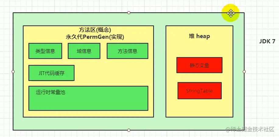 | ****JDK1.7 | ****有永久代,但已经逐步 “去永久代”,字符串常量池,静态变量移除,保存在堆中 |