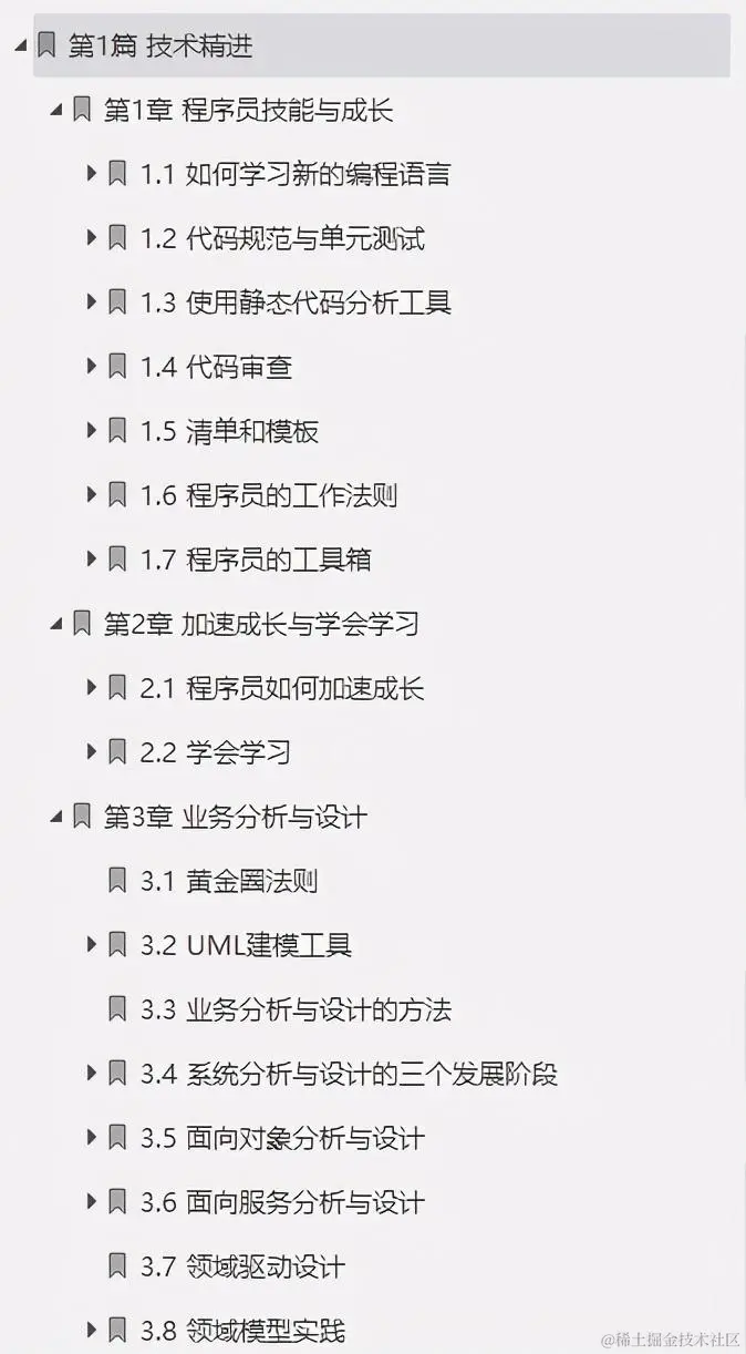 第1篇介绍程序员的技能成长路径,介绍如何通过学习来加速成长,并讲解非常重要的业务分析和设计知识;