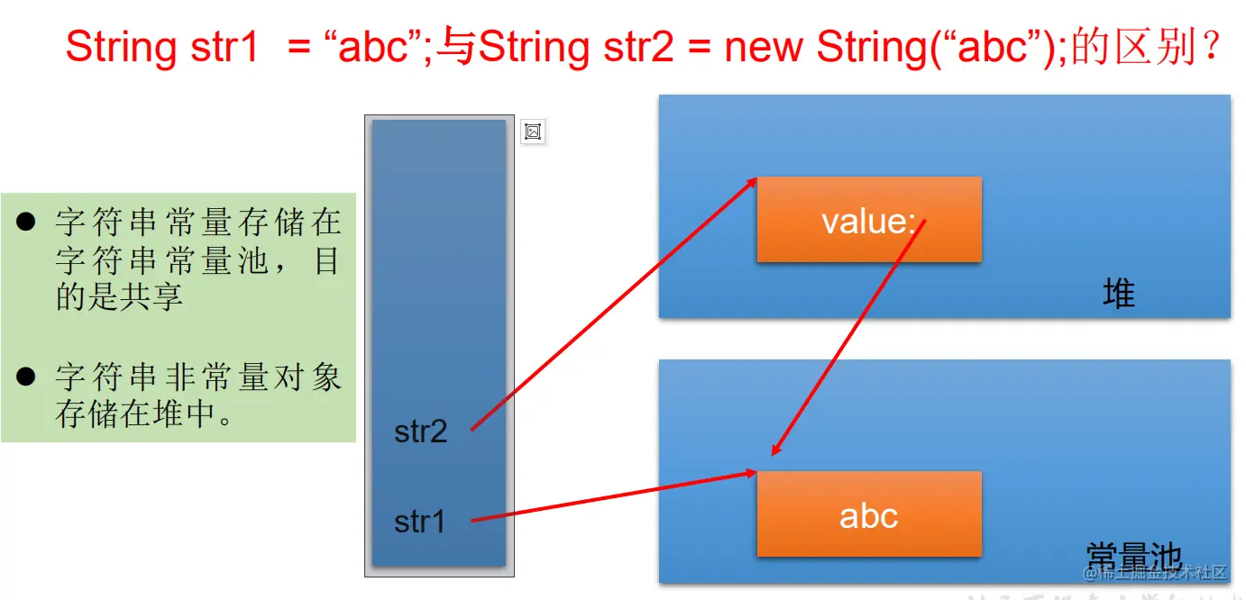 System.out.println(s == s2); // false s指向堆 s2指向常量池