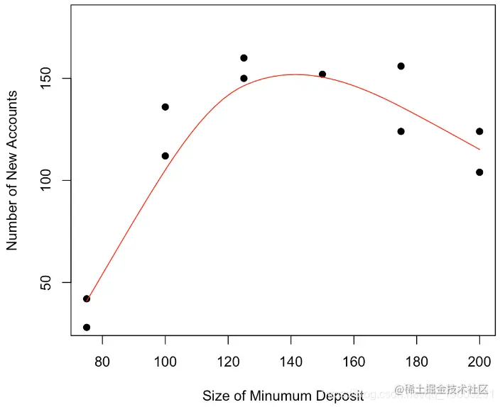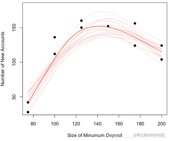 我们可以清楚地看到我们的曲线似乎是凹的,开始时增加,结束时减少,可以进行非参数平滑