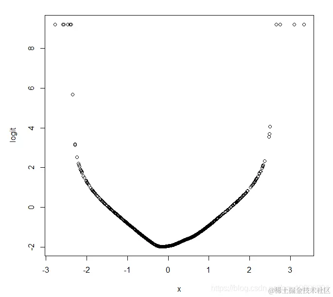还需要注意的是,在X值很少的区域,估计的logit会更加不精确。这里我们从正态分布生成X,我们可以从图中看到只有少数X值小于-2或大于+2(正如我们所期望的那样!)。因此,我们不应过分关注X空间的这些区域中的估计logit值。