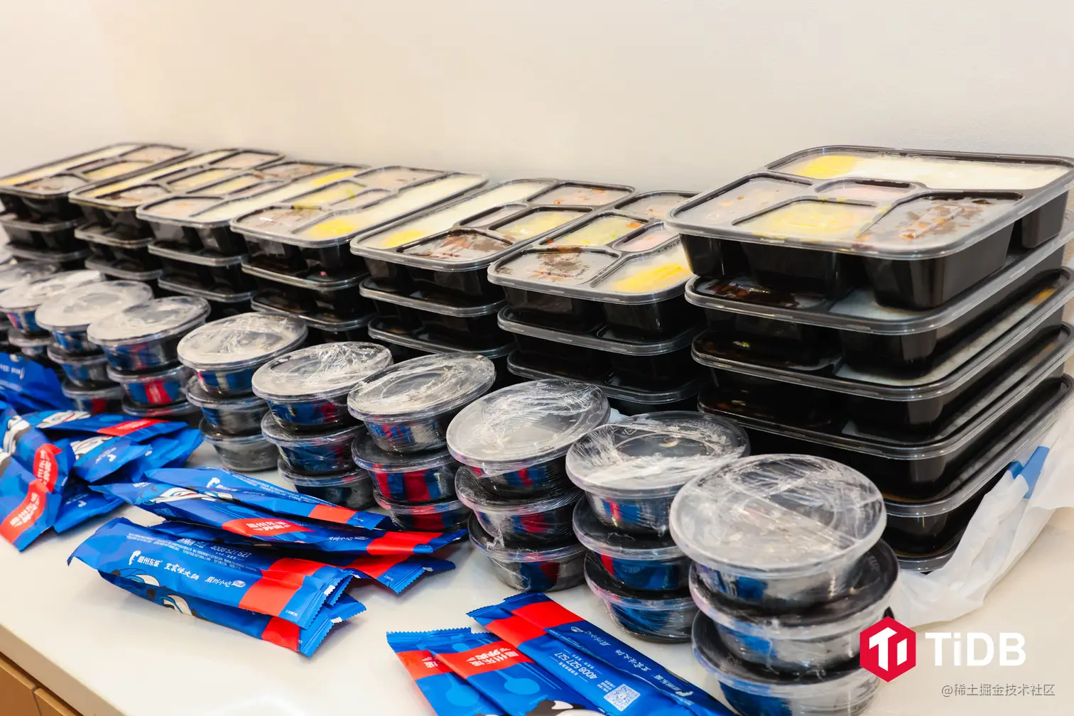 硬核的黑客马拉松少不了吃吃喝喝,为了保障六城分布式赛事顺利,志愿者们为参赛选手们准备了各种下午茶、午餐、晚餐,穿梭在赛场中为大家提供分布式后勤保障。