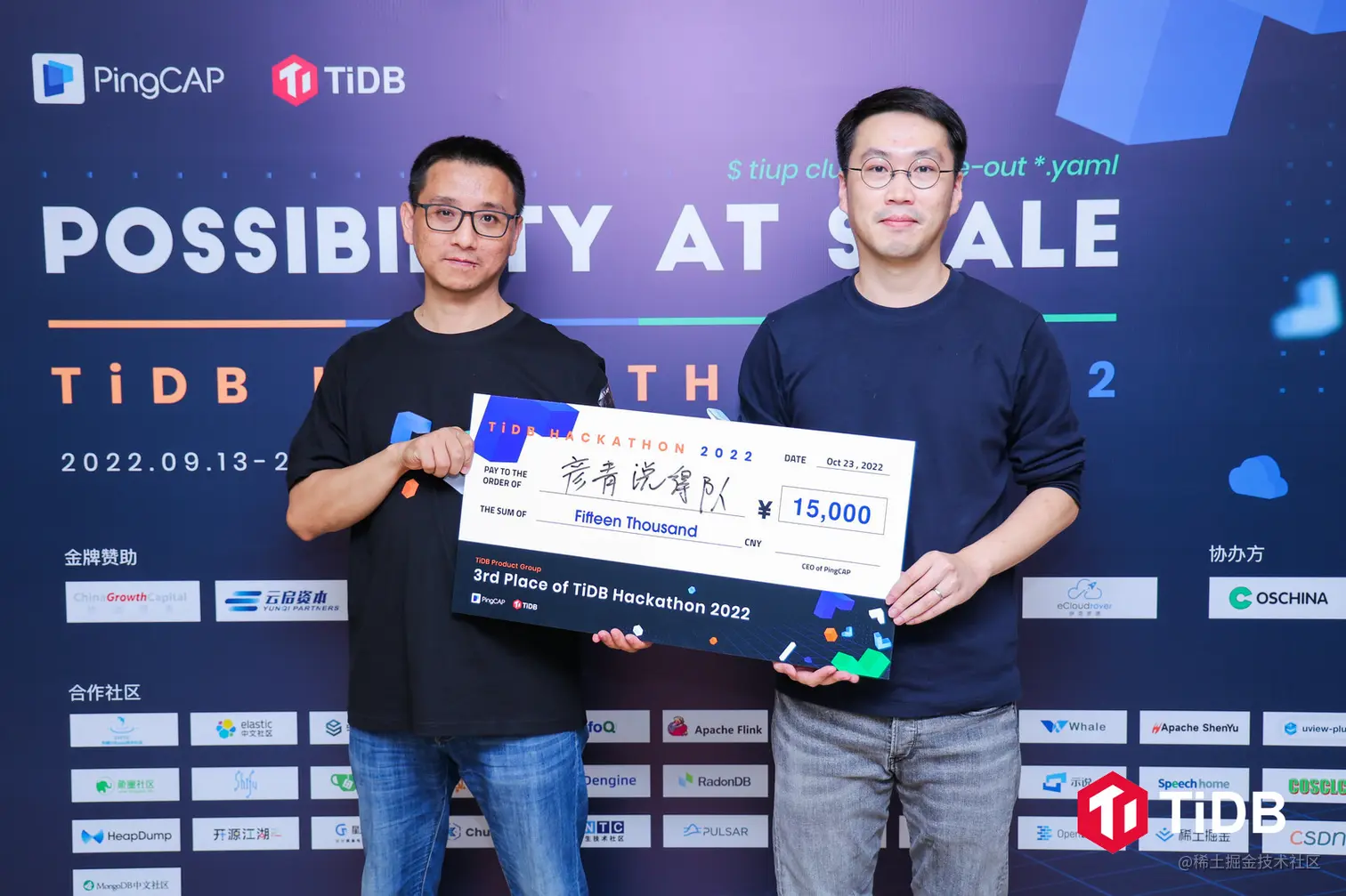 最后,感谢华创资本、云启资本、GGV、初心资本、AWS、GCP、伊克罗德等赞助商和合作伙伴对赛事的大力支持,也感谢志愿者们的奉献!TiDB Hackathon 2023 ,我们再见!