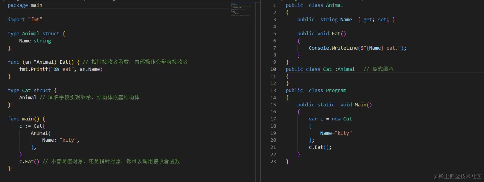 C#具备语义化的继承/抽象/多态, 显式继承。