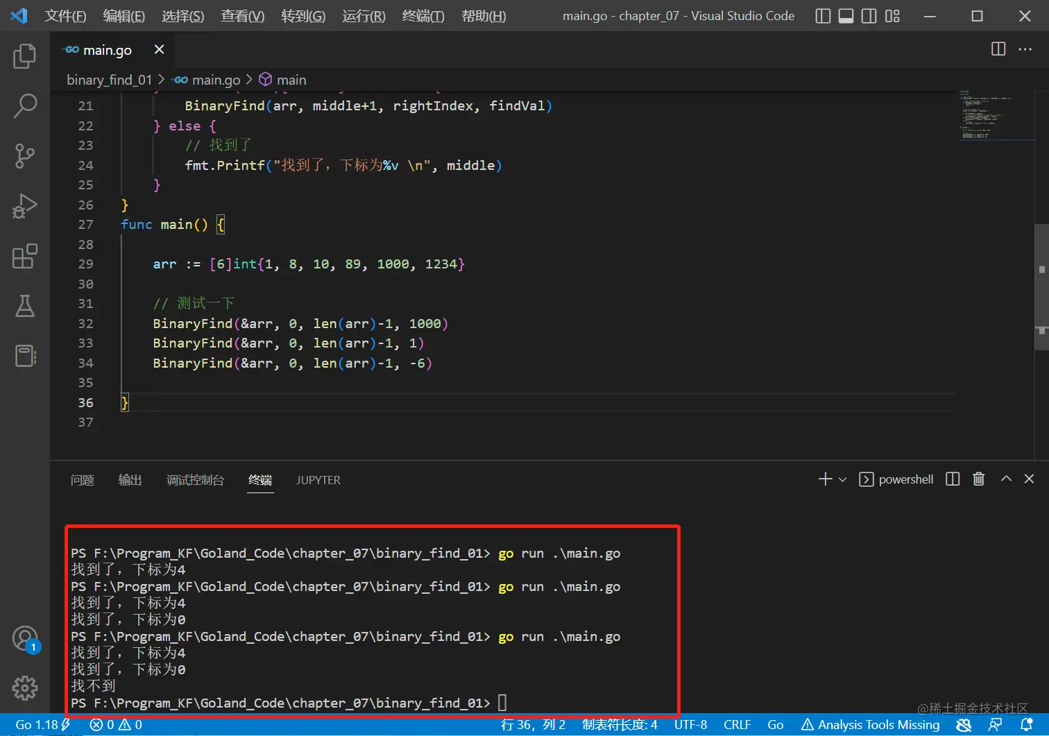 fmt.Printf("找到了,下标为%v \n", middle)