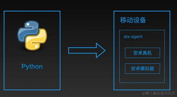 python端:运行脚本,并向移动设备发送HTTP请求。移动设备:移动设备上运行了封装了uiautomator2的HTTP服务,解析收到的请求,并转化成uiautomator2的代码,对被测程序进行相关操作。
