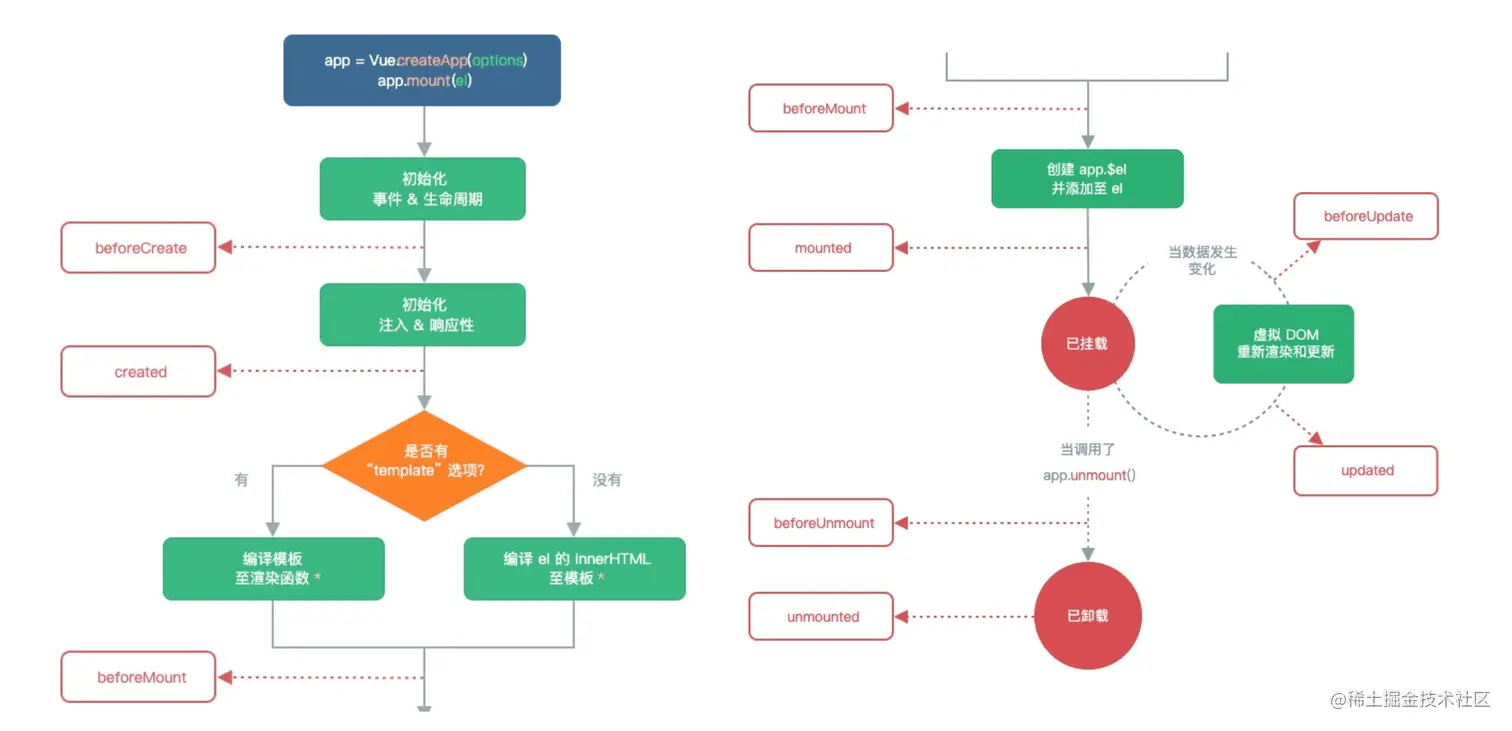 - 但是我们如何可以知道目前组件正在哪一个过程呢?Vue给我们提供了组件的生命周期函数