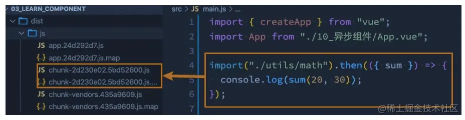 - 所以,对于一些不需要立即使用的组件,我们可以单独对它们进行拆分,拆分成一些小的代码块chunk.js;