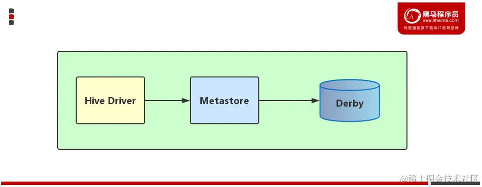 内嵌模式使用的是内嵌的Derby数据库来存储元数据,也不需要额外起Metastore服务。数据库和Metastore服务都嵌入在主Hive Server进程中。这个是默认的,配置简单,但是一次只能一个客户端连接,适用于用来实验,不适用于生产环境。