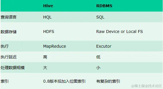 Hive与传统数据库对比