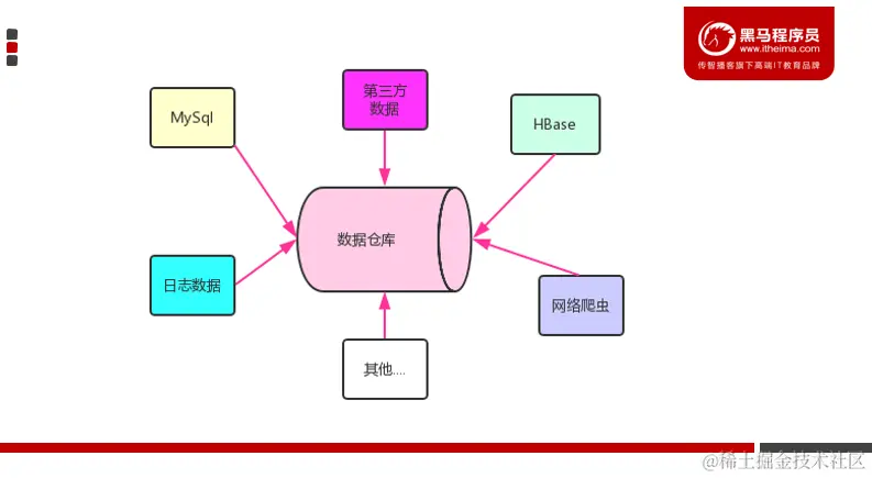 - 数据仓库,是在数据库已经大量存在的情况下,为了进一步挖掘数据资源、为了决策需要而产生的,它决不是所谓的“大型数据库”。