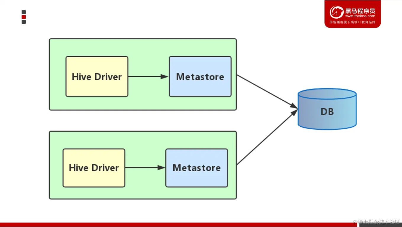 在这种情况下,其他依赖hive的软件都可以通过Metastore访问hive。