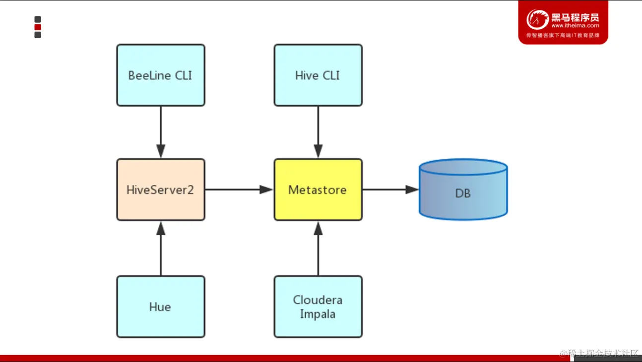 元数据服务(metastore) 作用是:客户端连接metastore服务,metastore再去连接MySQL数据库来存取元数据。有了metastore服务,就可以有多个客户端同时连接,而且这些客户端不需要知道MySQL数据库的用户名和密码,只需要连接metastore 服务即可。