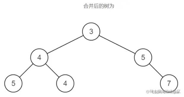 已知两颗二叉树,将它们合并成一颗二叉树。合并规则是:都存在的结点,就将结点值加起来,否则空的位置就由另一个树的结点来代替。例如: