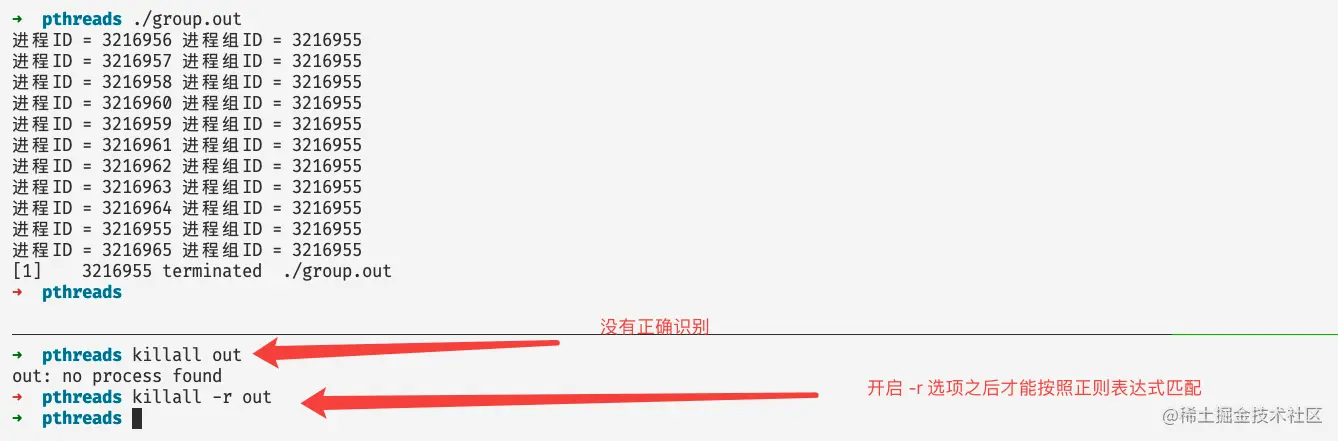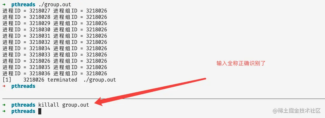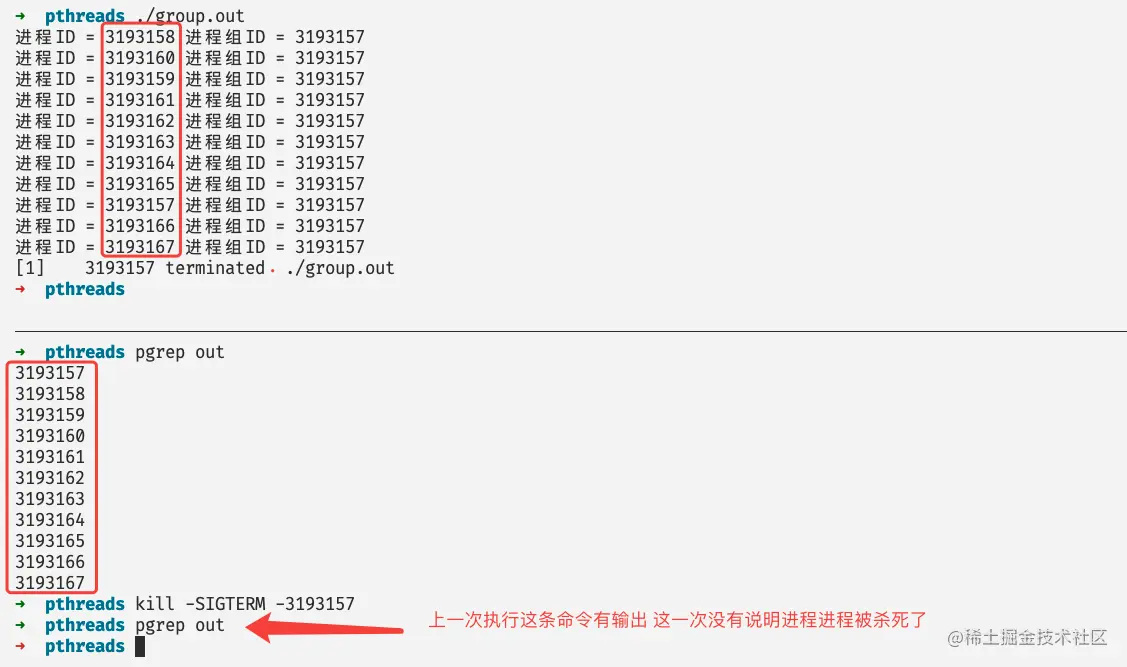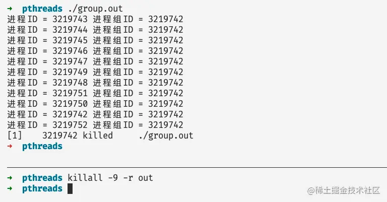 有的时候我们会有一个需求就是杀死一个进程组里面的所有进程,我们可以使用命令