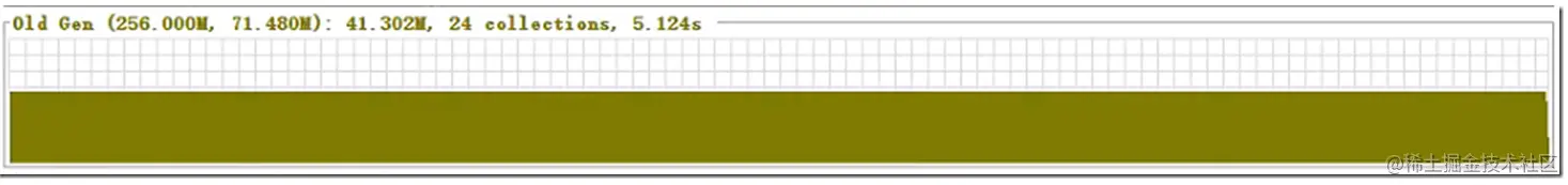 再来看下老年代,目前老年代发生了24次GC,最大分配空间是256MB,当前最小分配空间是71.48M,可见,还可以适当进行优化。