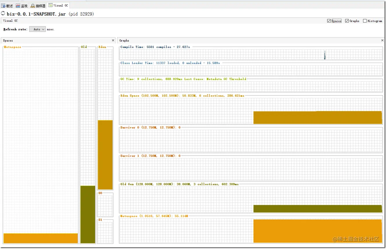 - 可视化GC窗口(space)