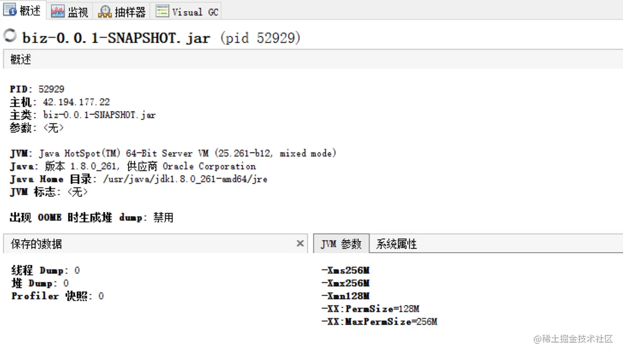 最后,需要注意一点,本地环境使用jstatd模式远程连接线上服务端的JVM时,是不能在本地获取到堆栈信息的,可以手动生成dump文件来分析出现异常的堆栈信息。