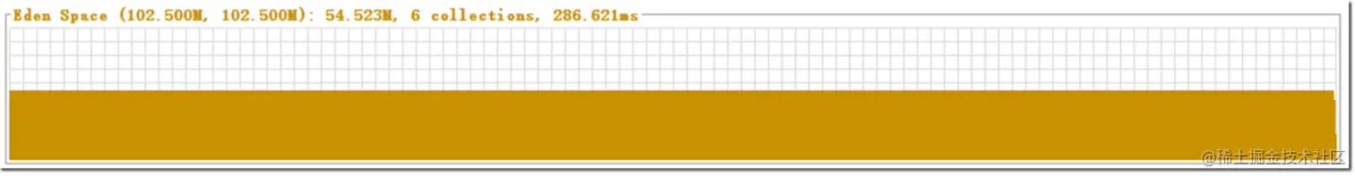 - Eden Space当前占用空间:54.523M(当积累的占用空间超过102.500M,就会在Eden Space发生一次Minor GC)