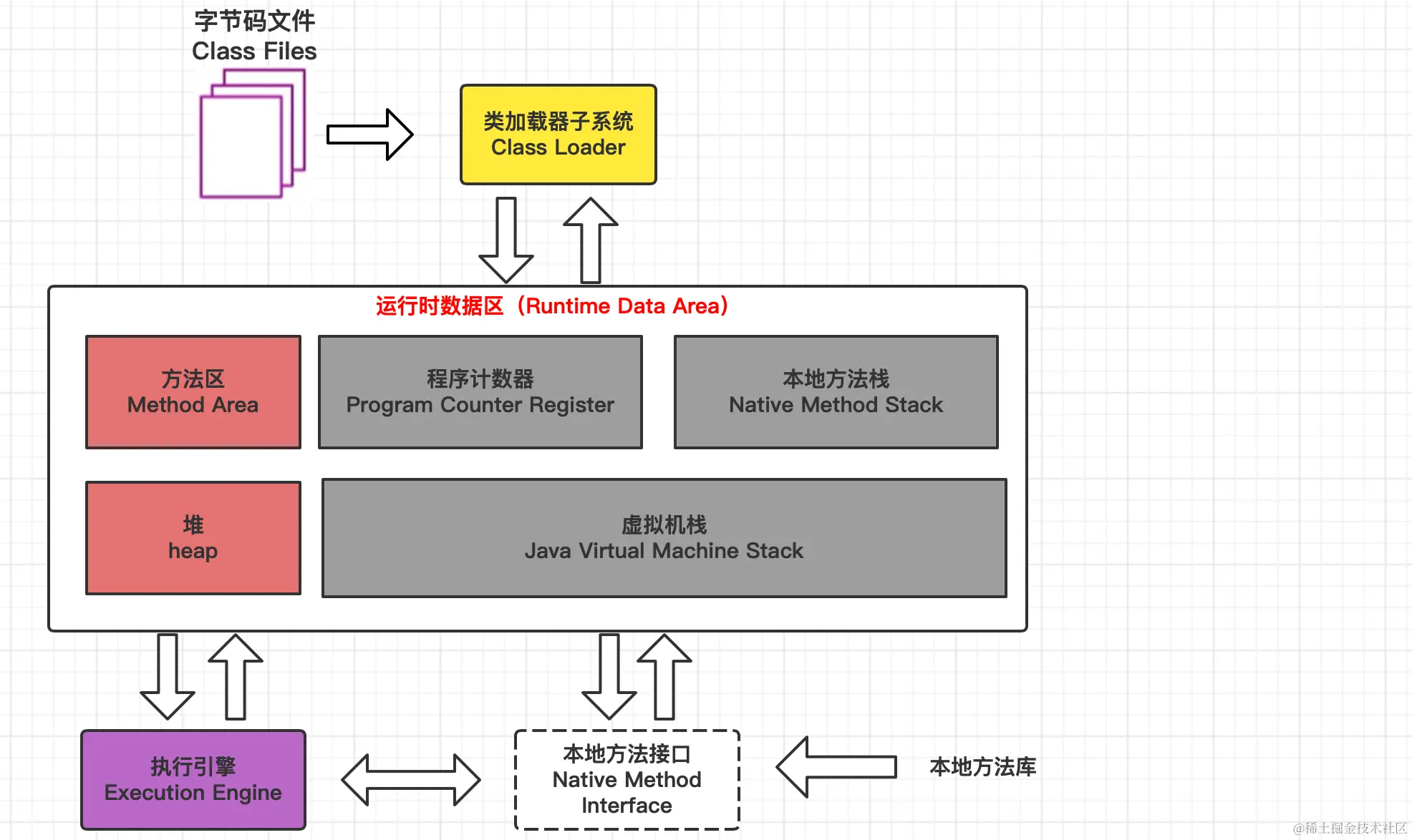 - 一个运行中的Java虚拟机有着一个清晰的任务:执行Java程序。