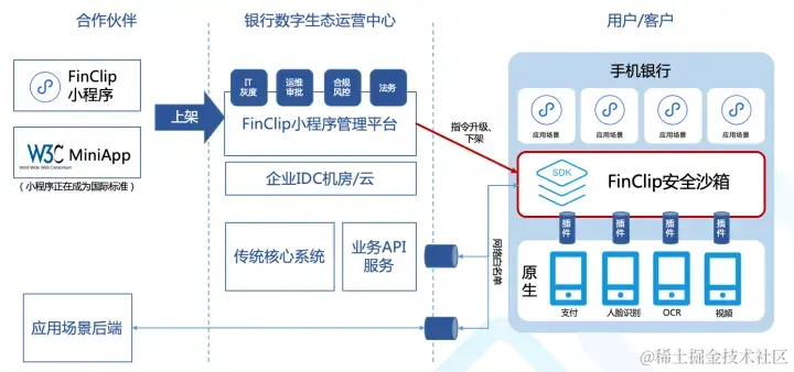 同时,FinClip它有一个比较有趣的逻辑:企业的软件供应链在数字化时代可能是需要被重新定义的 - 有可能你的合作伙伴的代码运行在你这里、也有可能你的代码借道合作伙伴的平台去触达对方的客户。