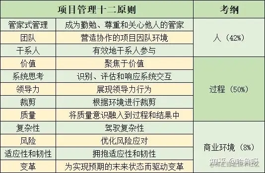3、其他方面,如考纲要求建立项目治理结构,要求对项目相关方进行辅导等。