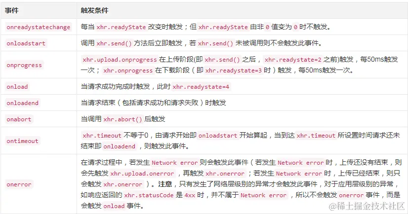 XMLHttpRequest有很多触发事件,每个事件是怎么触发的。