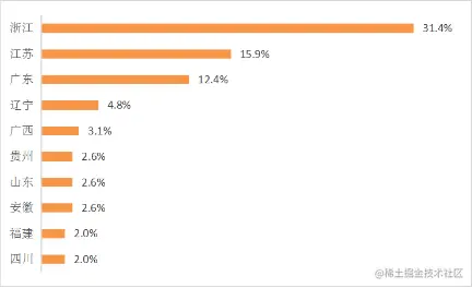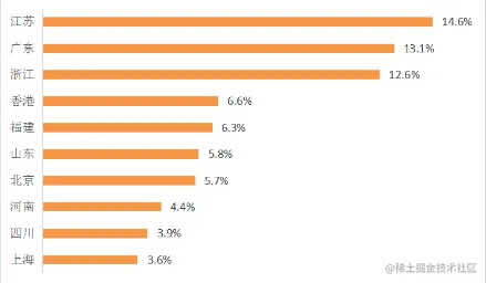 2020 年,国内 DDoS 受控攻击源数目前三的省份是浙江、江苏、广东,占全国 DDoS 受控攻击源 总量的 59.7%。