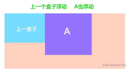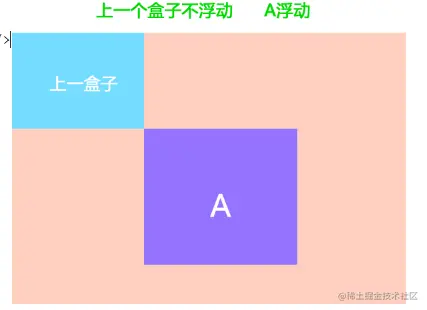 浮动的元素排列位置,跟上一个元素(块级)有关系。如果上一个元素有浮动,则A元素顶部会和上一个元素的顶部对齐;如果上一个元素是标准流,则A元素的顶部会和上一个元素的底部对齐。