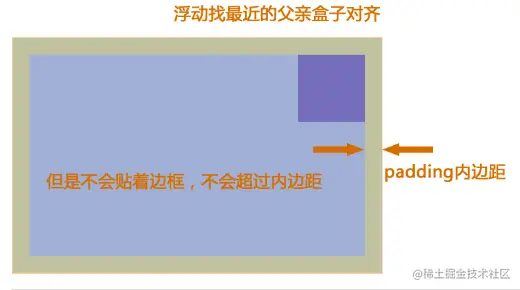 浮动首先创建包含块的概念(包裹)。就是说, 浮动的元素总是找理它最近的父级元素对齐。但是不会超出内边距的范围。