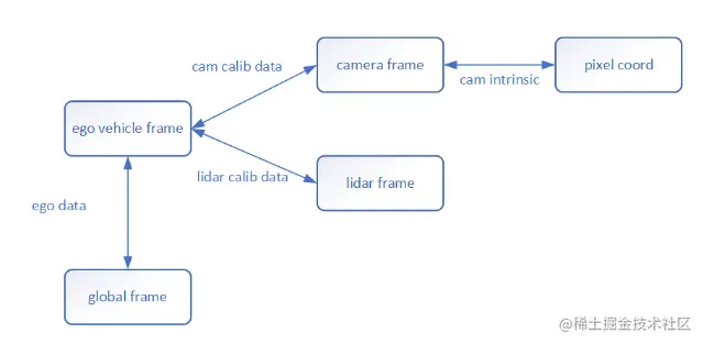 nuScenes 数据集数据在坐标系之间的转换示意图