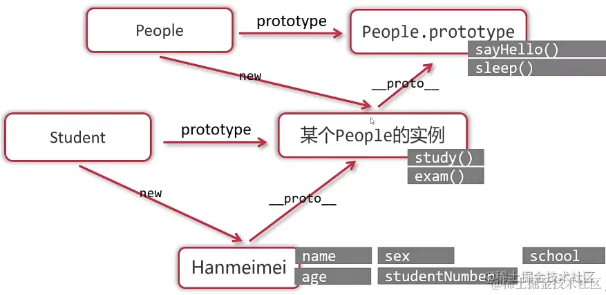 // 调用我们自己编写的inheritPrototype函数,这个函数可以让Student类的prototype指向“以People.prototype为原型的一个新对象”