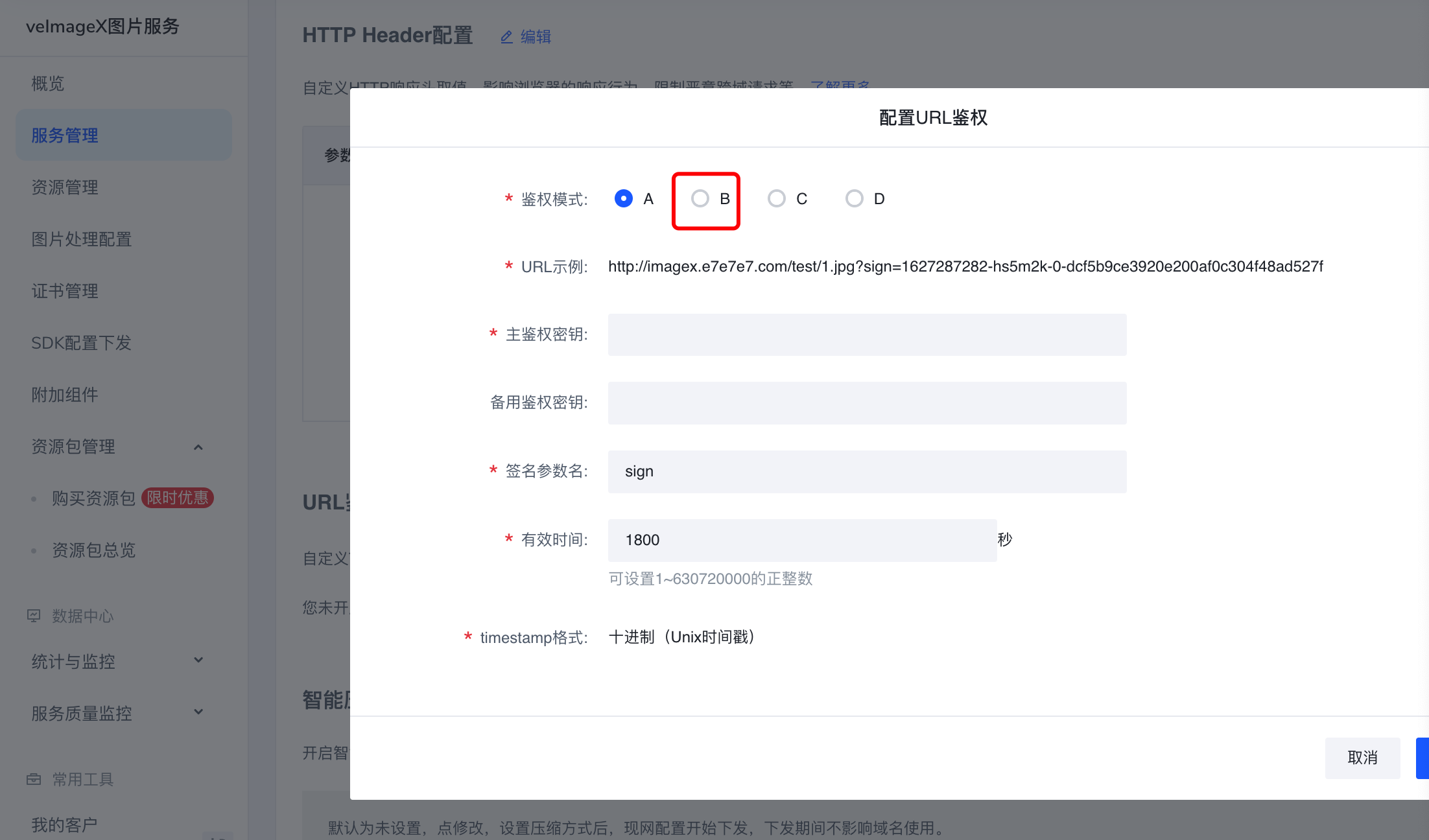 (2) 设置界面 `console.volcengine.com/imagex/serv…, :`console.volcengine.com/imagex/serv… B。
