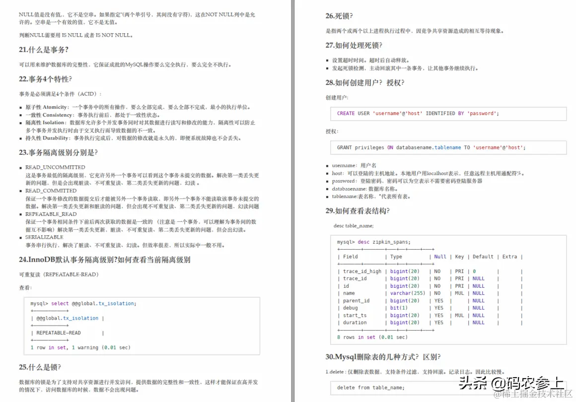 164页,2022新版《Java面试手册》,抓住机会向前冲 南白 2022-10-26 50 阅读1分钟 小伙伴们,2022新版《Java面试手册》来啦,这本小册子总计164页,全都是面试中的高频题目,有兴趣的小伙伴们不妨来看一下,为上岸做一下准备。 由于全部内容过多,下面截取部分内容截图,大家可以先来大体看一下。 Java基础 Linux 【+jcc4261获取】 Mysql Spring Mybatis Redis SpringBoot Kafka 由于全部内容过多,还有很多内容没有截图,例如还有Nginx、Dubbo、SpringCloud等模块的内容。