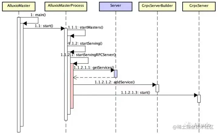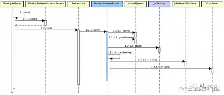 - AlluxioJobMasterProcess执行start方法,调用细节如下: